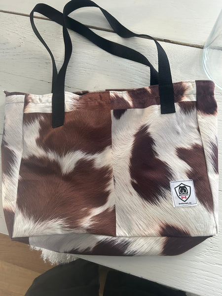 The Cow Hide Tote adds Western flair to your Buttcoats looks without overwhelming them. Roomy yet structured, it fits your laptop and daily essentials while pairing effortlessly with neutrals like denim, creams, and quilted vests.